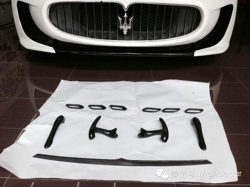 玛莎拉蒂GT碳纤部件:叶子板风口、外门拉手、后尾箱饰条、方向盘大拨片、内饰碳纤饰条9件套、内门板拉手、座椅调节按钮